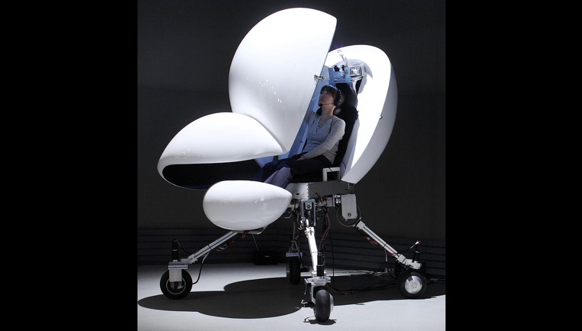 人間が搭乗可能なVR(バーチャルリアリティ)実験装置です。コックピット内側一面に映し出される映像に合わせ全方向への移動・傾斜を行います。実世界とバーチャル世界を自由に動き回るための乗り物です。